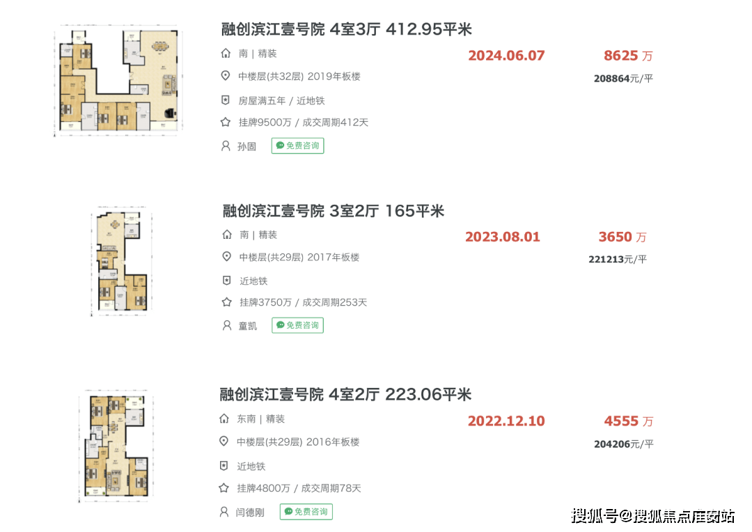 其三,“壹号院”保值性,由于一流的地段和产物,所以每个项目标价值取价钱都很是的坚挺,好比,滨江壹号院三期开盘价12-13万元/㎡,现在二手房售价达20-22万元㎡,溢价率达66%。而隔邻的绿地黄浦滨江,2016年开盘价13万元/㎡,现在二手售价15-19万元/㎡,溢价最高仅46%,溢价相差20%。