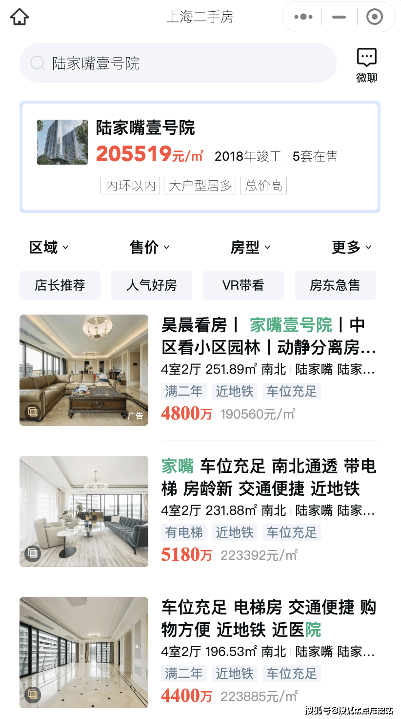 以及,陆家嘴壹号院,2018年开盘均价11-12万元/㎡,现在二手房挂牌均价20万元+/㎡,溢价率同样高达约67%。