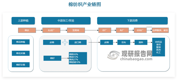 棉纺织财产链长,但用处单一。棉花次要用于纺织工业,少量用于医药、化工等行业。正在棉纺织财产链中,上逛指的是棉花的种植,棉农正在4月起头进行播种,9月起进入采摘收成期,获得籽棉;中逛指的是棉花的加工和商业,棉农将籽棉采收后交售给轧花厂,轧花厂进行加工获得皮棉和棉籽,我们常说的棉花的产量指的就是皮棉的产量,棉籽做为副产物能够进一步加工获得棉粕、棉油、棉短绒等等;棉花的下逛指的是棉纺织品的制制、染整和辅料、服拆制制环节,通过纺纱、织制、染色、后加工、裁缝出产等过程使纤维原料变成纺织成品,之后进入发卖畅通环节,通过各类发卖渠道使服拆、家纺等纺织品进入终端消费者手中。