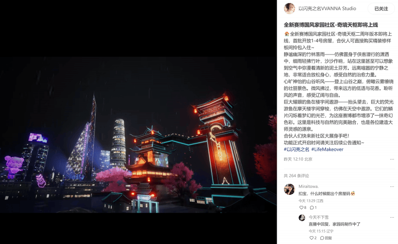 不止于此,功能取弄法的迭代和丰硕也让玩家们看到了女性向逛戏的将来。家园系统还正在进化,全新赛博国风家园社区奇境天枢即将正式,将国风美学取赛博幻想完满融合的奇异世界,每一处细节都充满欣喜取想象力,期待大师来发觉取创制。家园自定形功能将于四月送来更新,从圆润的山丘到挺拔的峰峦,以至壮阔的裂谷奇迹,你能想到就能获得,更有各类地表的气概可供大师选择。家园系统中也会第一人称视角,让大师更能沉浸式体验。